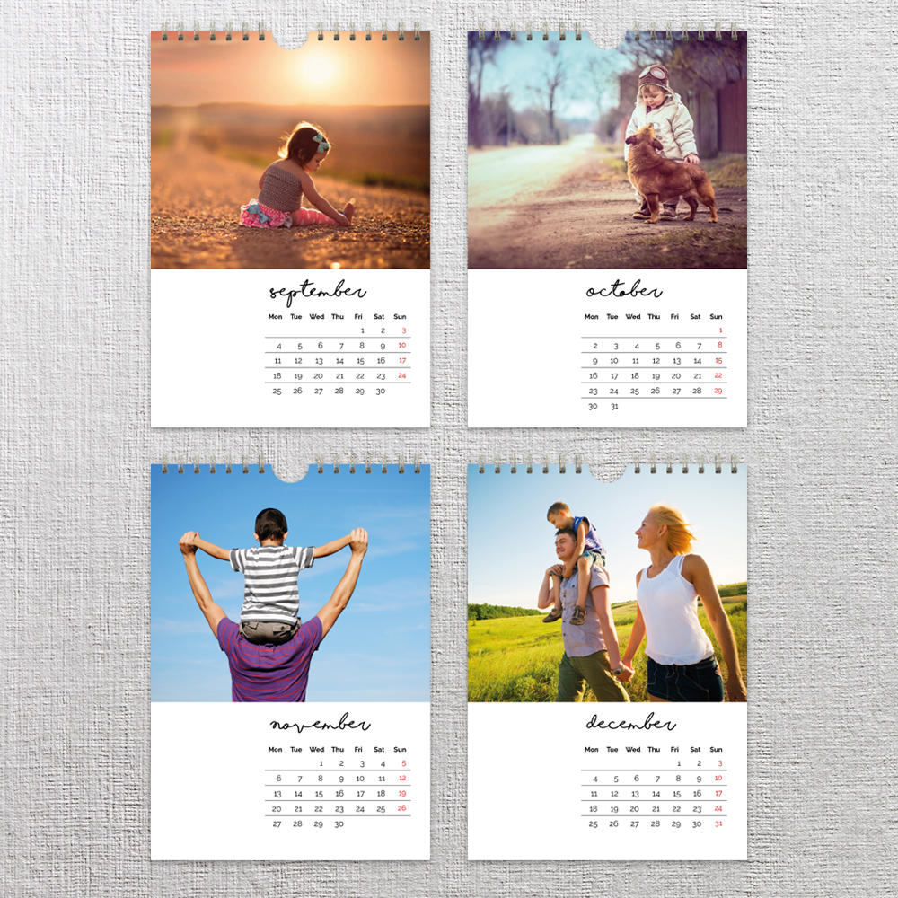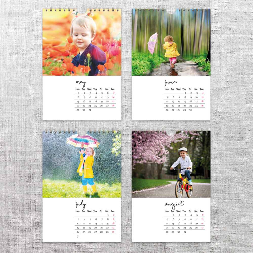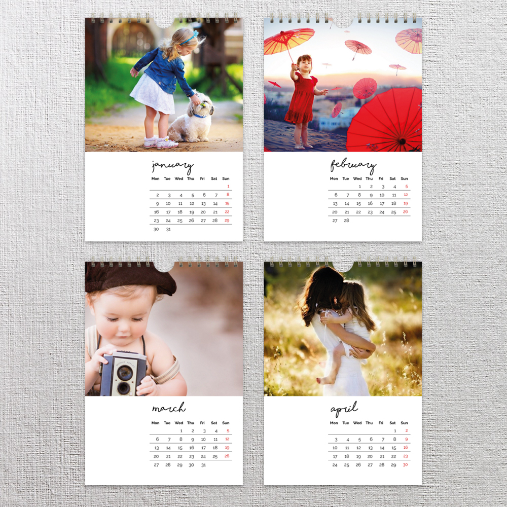 Create a month to view classic wall calendar in seconds. All you need is 13 photos and you can start your calendar with any month you choose.