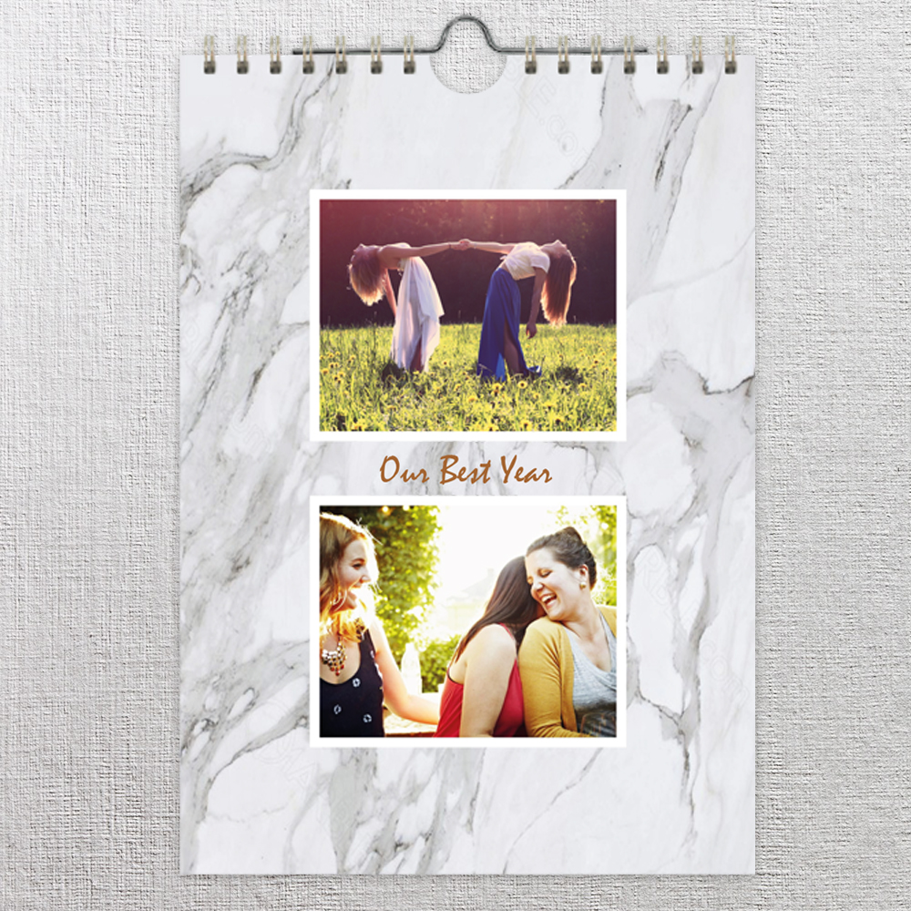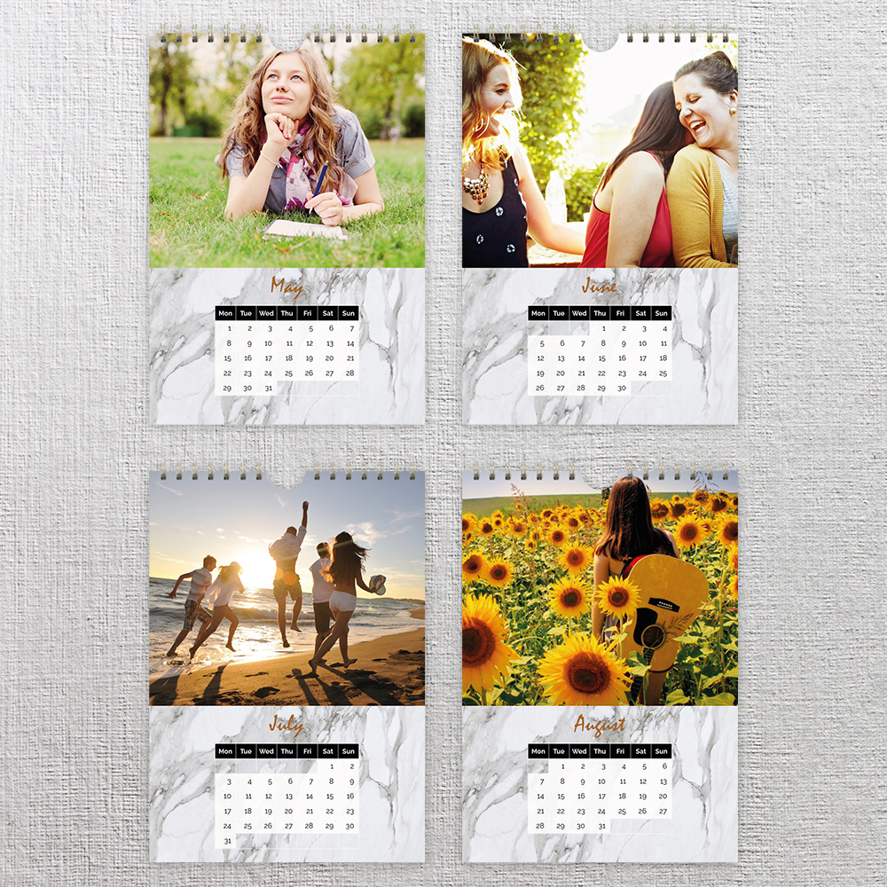 Create a month to view classic wall calendar in seconds. All you need is 12-14 photos and you can start your calendar with any month you choose.
