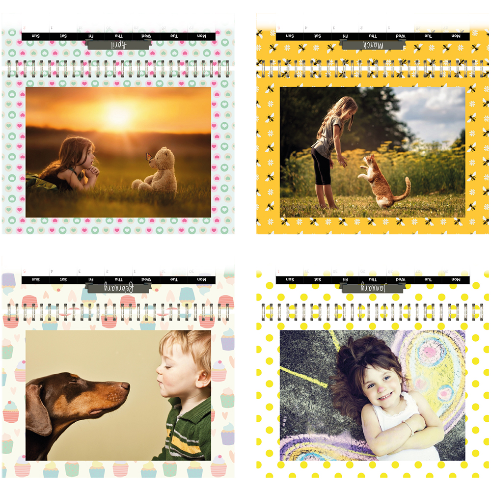 Sunshine & Happiness is a beautifully designed desk calendar with bright and cheerful backgrounds to jazz up your desk. You can pick your preferred start month and create a rolling calendar. All you need is 13 photos and you can personalised special dates with photos and text.